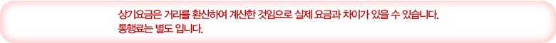 인천국제공항출발기준 전국요금표 |